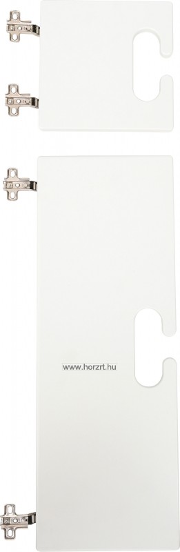 Ajtószett Bambi gyereköltözőhöz. Az ajtószett 2 db, szürke ajtót tartalmaz. Az ajtók 2-2 strapabíró kivetőpánttal csatlakoznak a szekrényhez. Külön fogantyúja nincsen, szépen megmunkált ovális kivágások segítik a kinyitást, illetve biztosítják a szekrény, így a benne lévő ruhák szellőzését is. Az ajtók anyaga színes MDF bútorlap. A felső, kisebb ajtó mérete: 20x20 cm. Az alsó, nagyobb ajtóé: 20x57,5 cm.