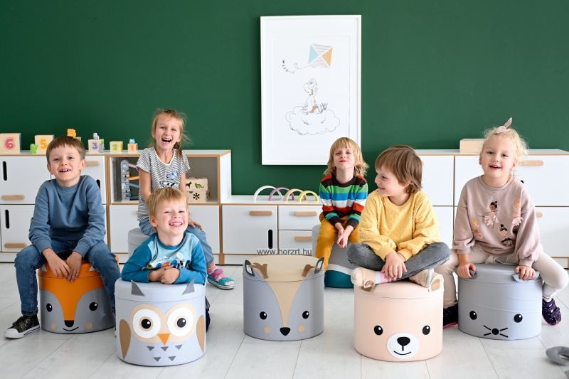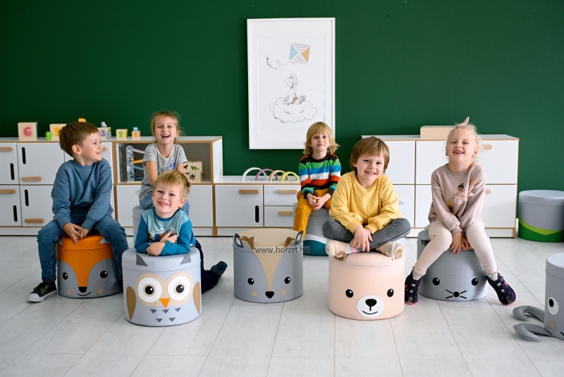 Aranyos állatos puff, amely a babaszoba hangulatos dísze lehet. Kedvelt termék bölcsődékbe, óvodákba vagy csoportos foglalkozásokhoz. A gyerekek könnyen tologathatják, vagy mozgathatják.