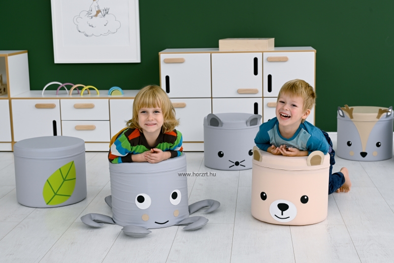 Aranyos állatos puff, amely a babaszoba hangulatos dísze lehet. Kedvelt termék bölcsődékbe, óvodákba vagy csoportos foglalkozásokhoz. A gyerekek könnyen tologathatják, vagy mozgathatják.
