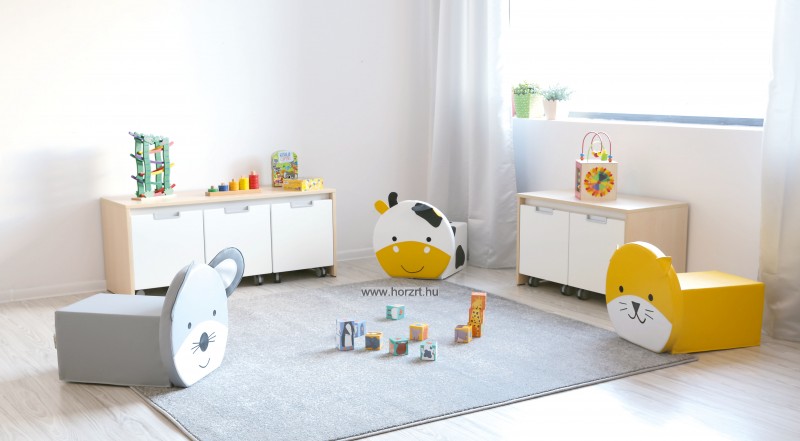 Aranyos állatos ülőpárna és puff, amely a babaszoba hangulatos dísze lehet. Kedvelt termék bölcsődékbe, óvodákba vagy csoportos foglalkozásokhoz.