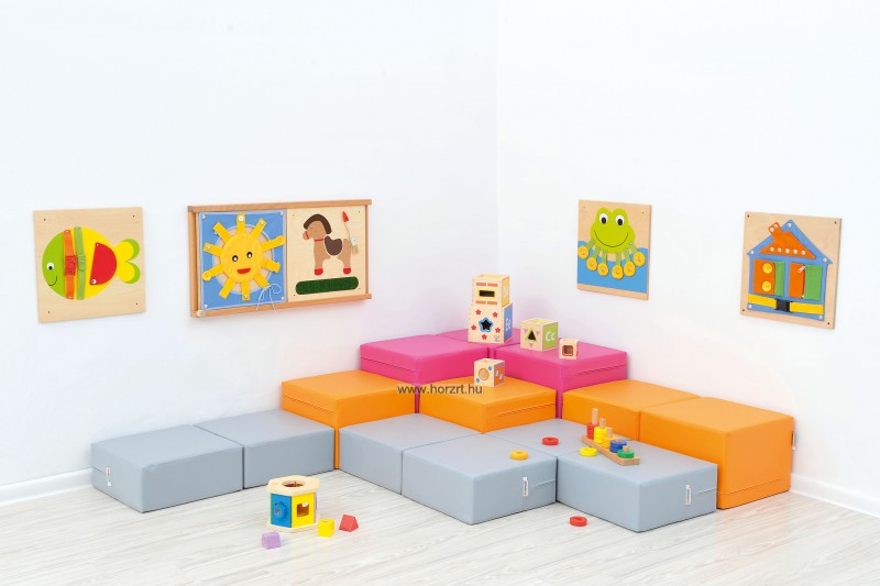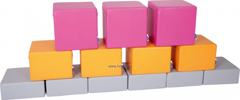 A különböző méretű színes puffok segítenek kialakítani egy kellemes, pihenésre alkalmas sarkot a csoportszobákba.A puffokból építhetünk vagy akár akadálypályaként is használhatjuk.Pihenéshez és játékhoz is kiváló.