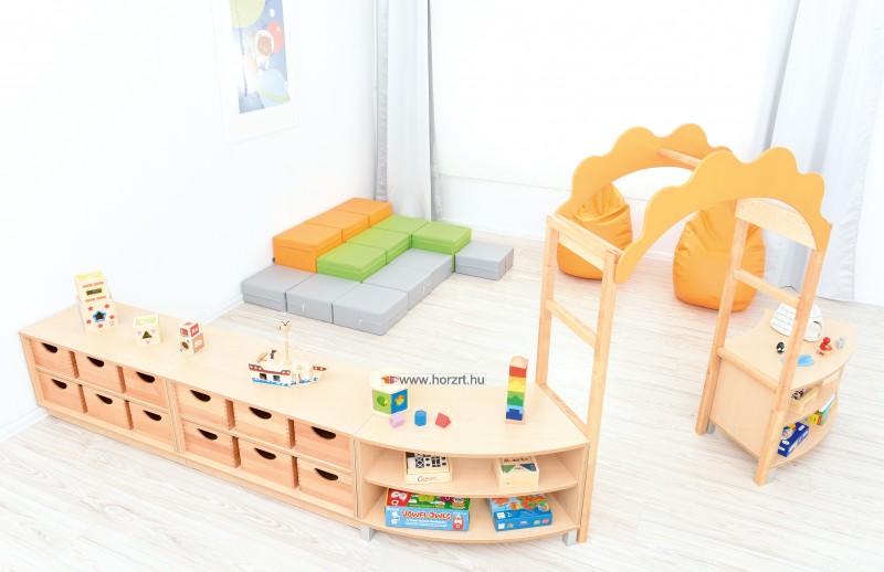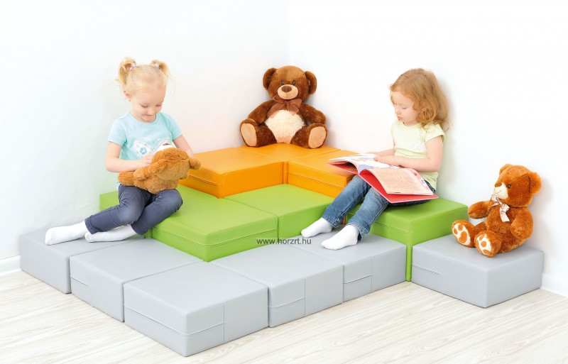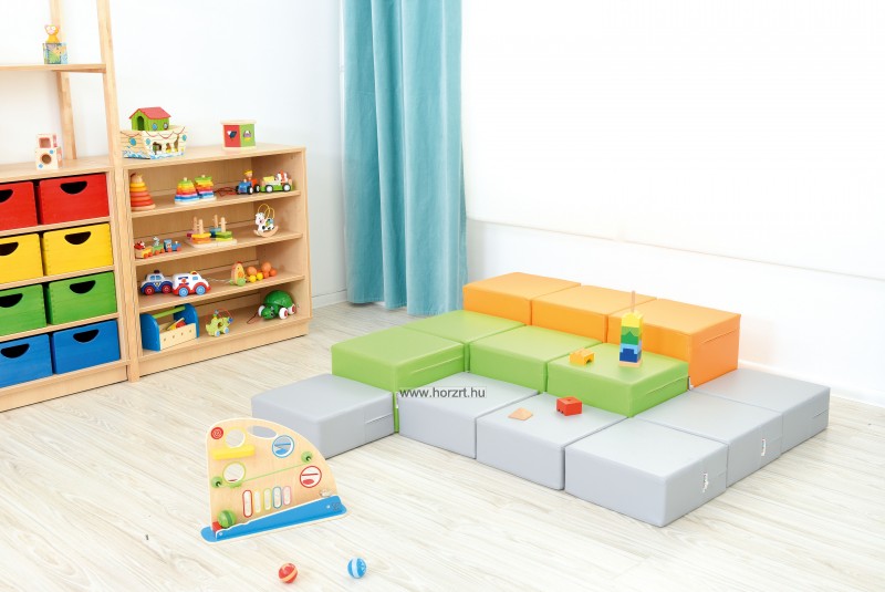 A különböző méretű színes puffok segítenek kialakítani egy kellemes, pihenésre alkalmas sarkot a csoportszobákba.A puffokból építhetünk vagy akár akadálypályaként is használhatjuk.Pihenéshez és játékhoz is kiváló.