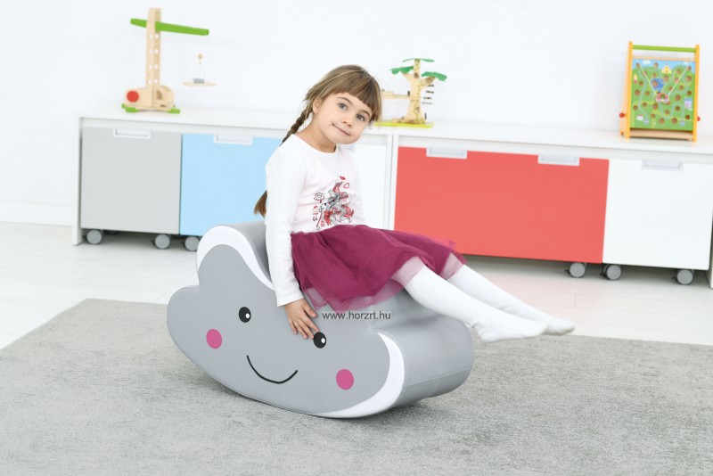A ringató felhő egy puha műbőrrel bevont, habszivacsból készült billegő puff. Ívelt alsó része adja a játék billegő mozgását. A felhő szürke és fehér színű, arca játékos, nagy szemei és kis mosolyra húzott szája van, rózsaszín arcpírral. Széles ülőfelülete és magas megtámasztása van, így megfelelő biztonsárérzetet nyújt a kicsiknek. Műbőr bevonata könnyen tisztítható. Mérete: 72x30x40,5 cm.
