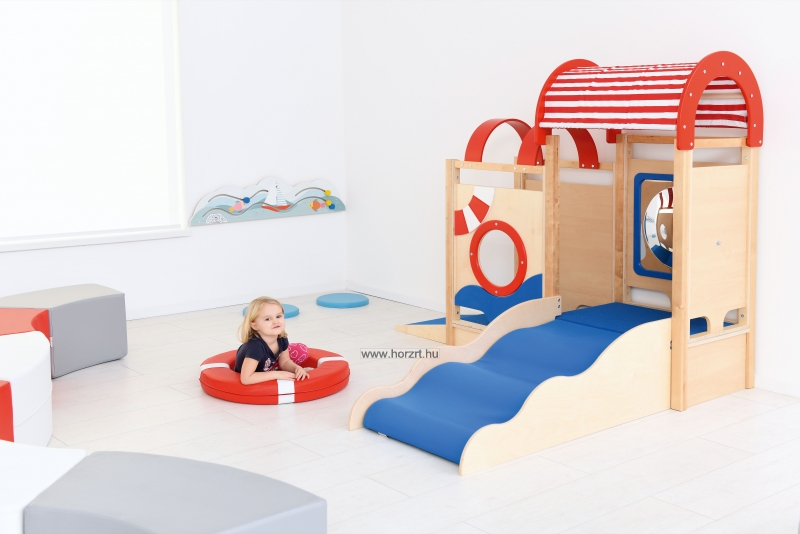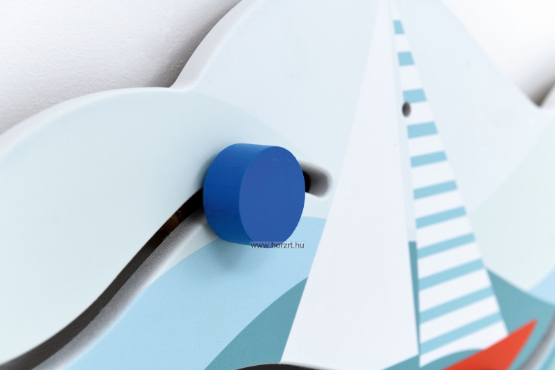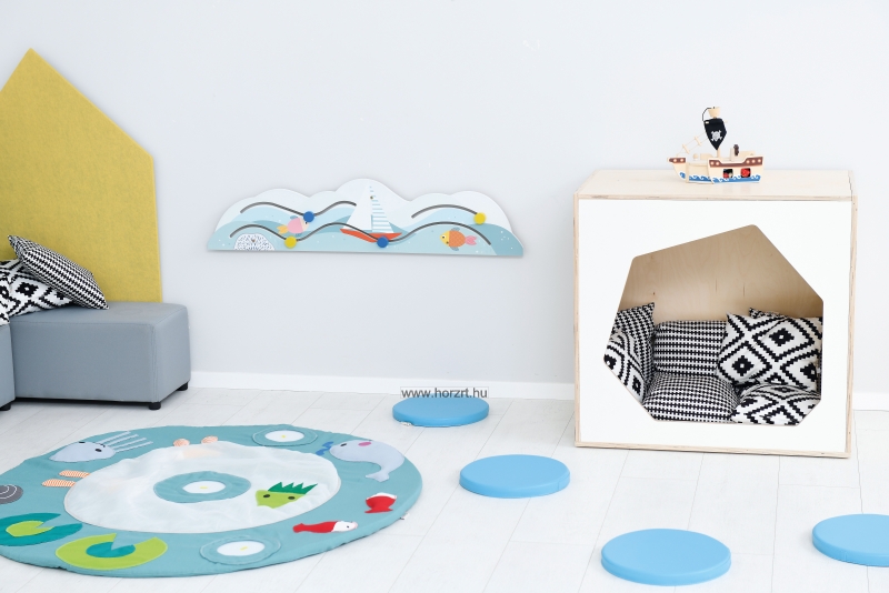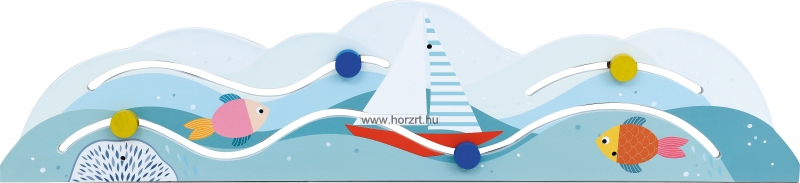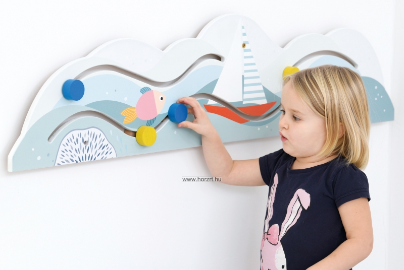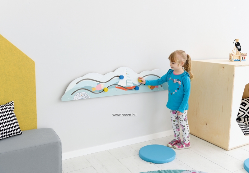 A falra szerelhető hullámzó tengert ábrázoló vonalvezető vidám és színes megjelenésével nem csupán a dekorációért felel, hanem készségfejlesztő feladatokat is lehet vele végezni.