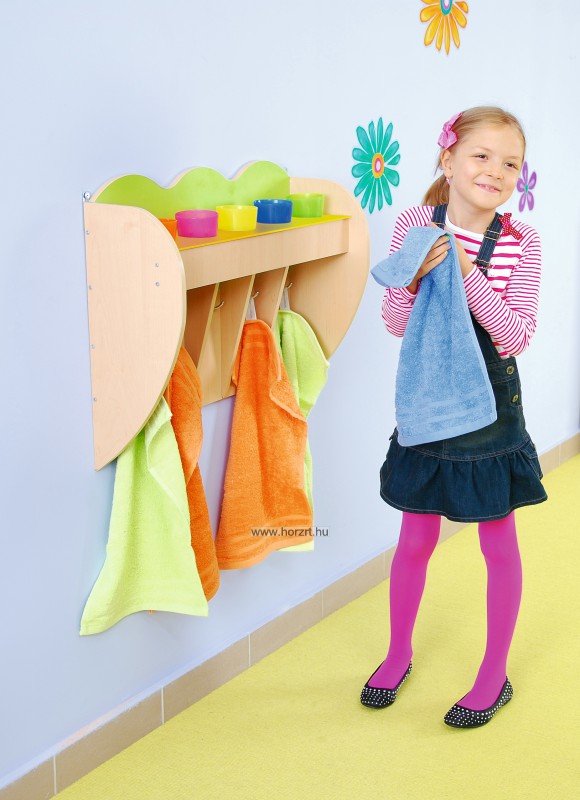 Rekeszes Törölköző- és pohártartó, 7 fő részére - zöld hátlappal