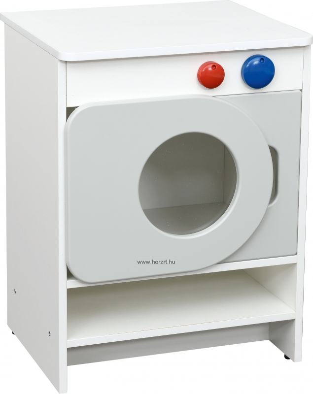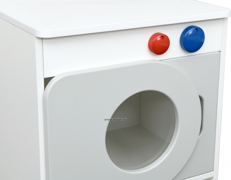 Színes játék mosógép szerepjátékhoz. Ha koszosak lettek a ruhák, csak tedd be őket a mosógép dobjába és varázsold tisztává.