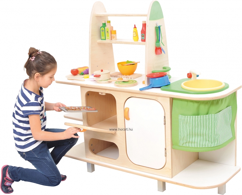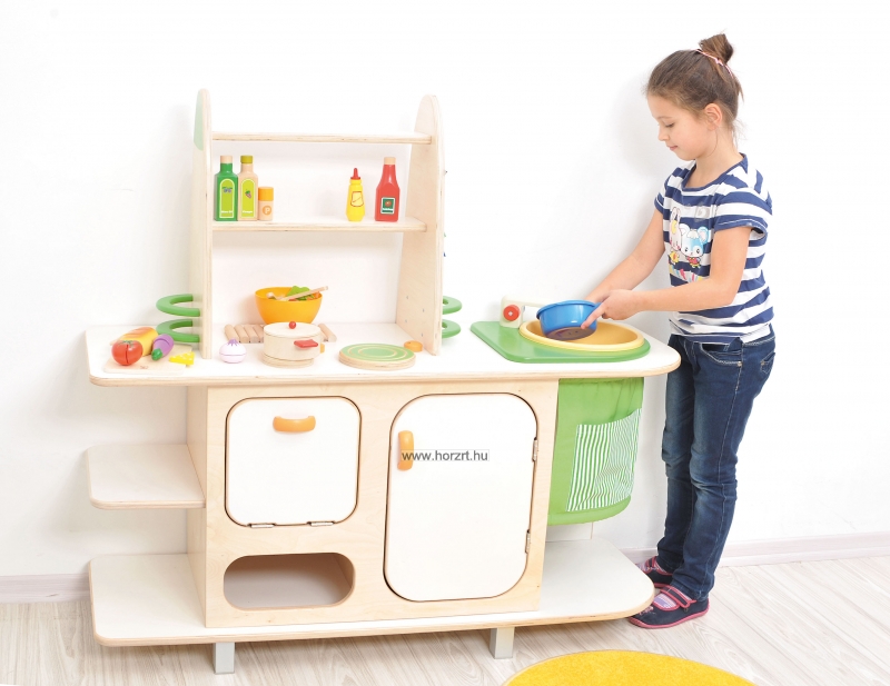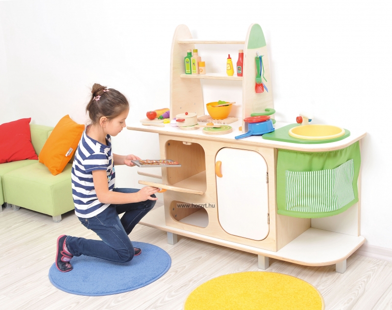 A játékkonyha kiválóan alkalmas óvodai és otthoni szobákba egyaránt.