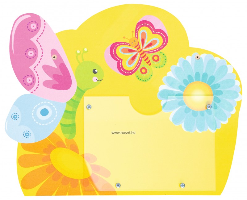 Színes tábla, aranyos és vicces alakzatban, amit a falra tudunk akasztani.A táblán van egy kis tartó amibe bármilyen szöveget beletudunk tenni, akár nevünket, vagy a csoport nevét. A plexi üveg mérete A6. Szuper kiegészítője a szobának.