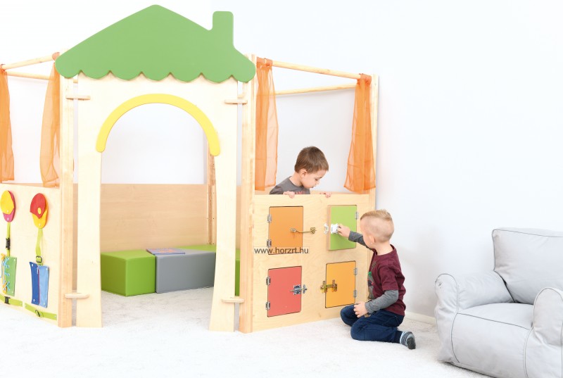 Változatos kiegészítő modulok, az elkerített szobasarok oldalaira. Mindegyik egyedülálló motívumokkal és feladatokkal van ellátva. fejleszti a kézügyességet és a tapintást.