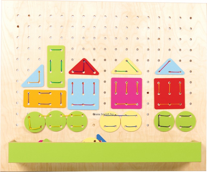A cipőfűzővel tudjuk rögzíteni a különböző formákat, fejleszti a kézügyességet és a koncentrációt.