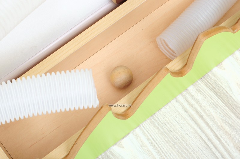 A fali golyópálya MDF bútorlapból készült, a műanyag cső színes tépőzárakkal van felszerelve.Színes és lenyűgöző megjelenésének köszönhetően szuper kiegészítője lesz a csoportszobáknak.