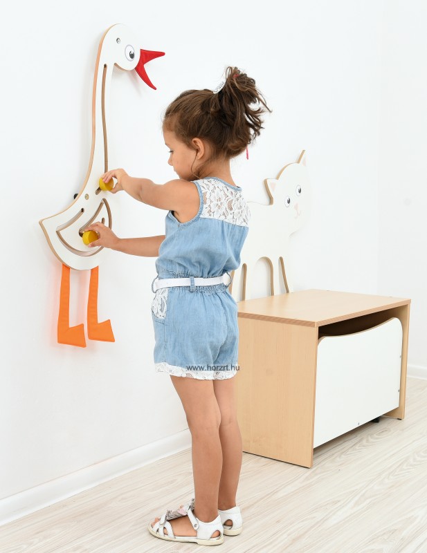 Falra szerelhető liba vonalvezető, amely vidám és színes megjelenésű. Nem csupán a dekorációért felel, hanem készségfejlesztő feladatokat is lehet vele végezni.A vonal mentén végig vezetve a kis golyót, kiválóan fejleszthető a kézügyesség és a finommotorikus készség.Jobb és bal kézzel egyaránt gyakorolható.
