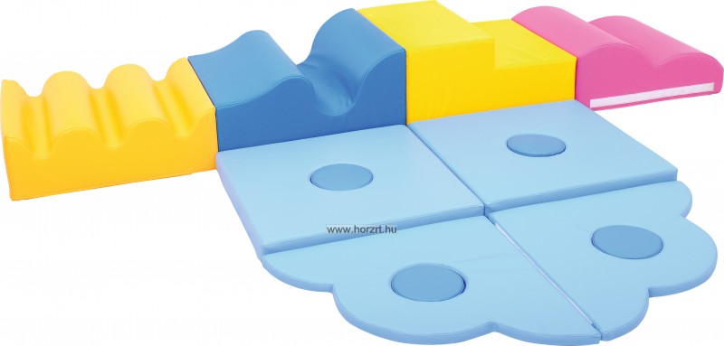 A szivacsmodul-kocka oldalán tépőzár helyezkedik el, így több elem is biztonságosan összeilleszthető. Motoros koordináció fejlesztésére szolgál.