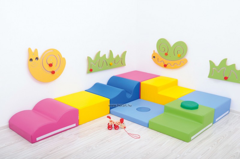 A szivacsmodul-dombok oldalán tépőzár helyezkedik el, így több elem is biztonságosan összeilleszthető..Motoros koordináció fejlesztésére szolgál.