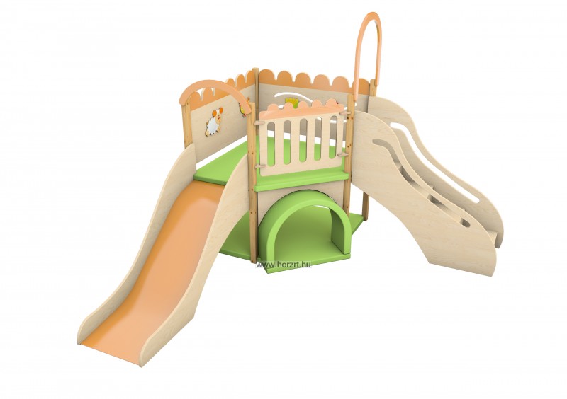 Egy álomhely a kreatív szórakozáshoz a kisgyermek számára. Serkenti a látást és a tapintást, valamint fejleszti a szem-kéz koordinációt. A sarok puha matracokkal van felszerelve, amelyek garantálják a gyermek biztonságát. Az egyik oldalon lépcső, a másikon csúszda található. Útközben számos látnivaló várja a kis kirándulókat. A csúszda alatt van egy bejárat - egy szivacsból készült alagút. Ezenkívül a sarkokban vonalvezetőket talál, amelyek stimulálják a kéz mozgékonyságát. Az aljzat csúszásmentes béléssel van bevonva.