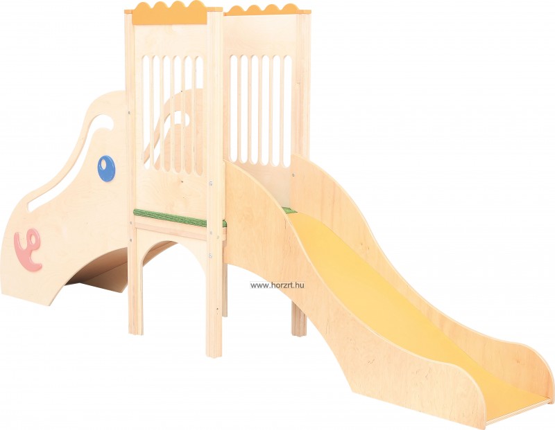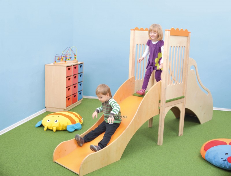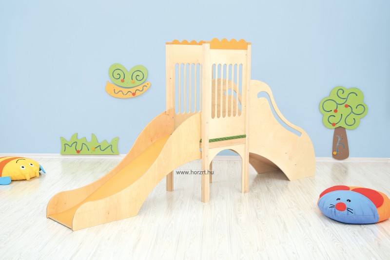 A csúszda a gyerekek egyik kedvenc attrakciója, sok órányi remek szórakozást biztosít számukra. Lakkozott rétegelt lemezből készült, vastagsága kb 18 mm-es és színes MDF.