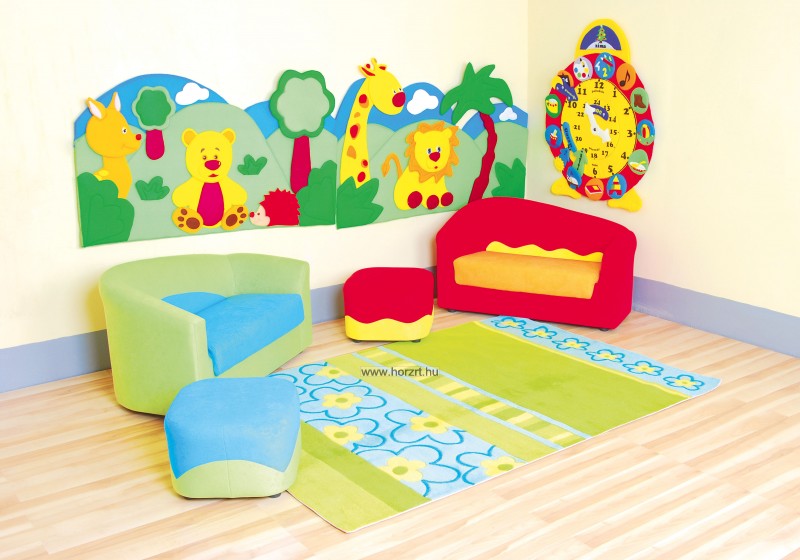 Esztétikus kivitelezésű kárpitozott szövettel borított kanapé, a gyerekek magasságához igazodó méretekkel. A bútor fa szerkezete stabilitást és kényelmet biztosít a kis felhasználók számára. Ezek a kanapék tökéletesek játékhoz, pihenéshez és olvasósarkokba egyaránt. Az ülések formája és színe eleganciát, valamint örömteli és meleg hangulatot kölcsönöz a helyiségeknek.