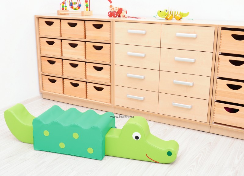 A krokodil pöttyei kitapinthatóak, Könnyedén használható ülőkének is ha a felső részt leemeljük róla.