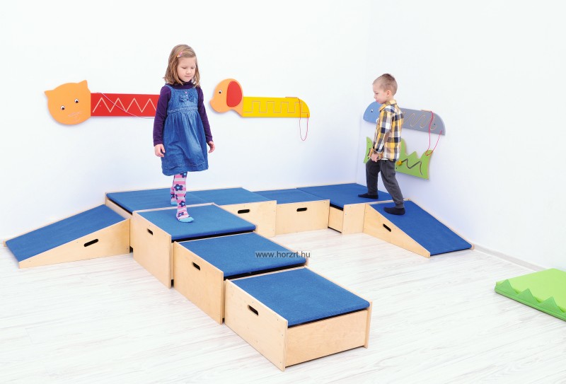 A Lejtő elem kitűnő kiegészítője lehet a 3 részes kockazsámolyszettnek, illetve a Dobogónak is. A különböző elemek felhasználásával igazán változatos és izgalmas mozgásfejlesztő pályák hozhatóak létre.