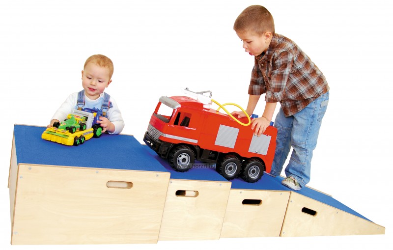 A dobogó hozzáilleszthető a 3 részes kockazsámolyhoz, illetve a lejtőhöz is. Így egy még izgalmasabb akadálypályát alkothatunk a gyerekek számára.