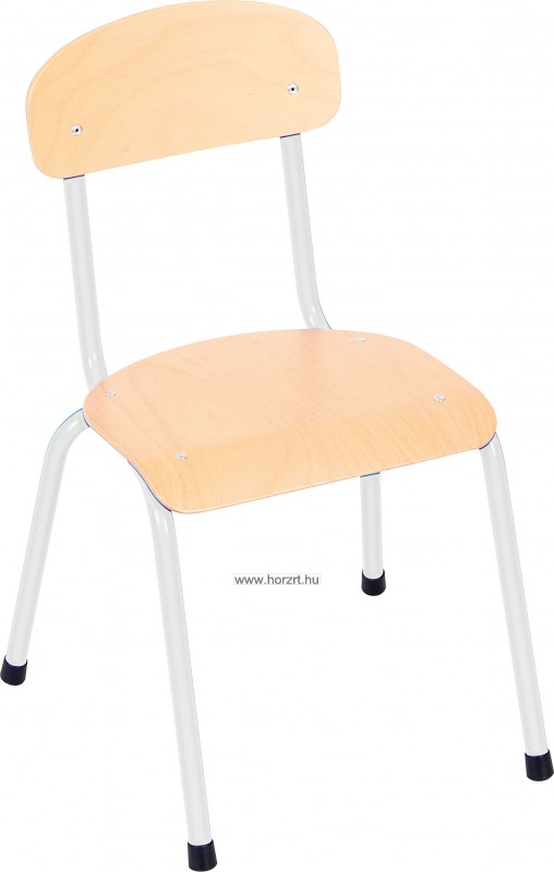 Csővázas gyerekszék ezüst színben. Az ülőfelület és a háttámla is bükk színű, lakkozott rétegelt lemezből készül. A szék váza fém, a lábak végére fekete színű lábvég dugó helyezhető, amit a csomag tartalmaz. A szék ülésmagassága 31 cm, egymásra rakásolható.