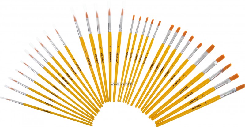 Az ecsetek színe egyforma mustársárga, sörtéjük narancssárga.