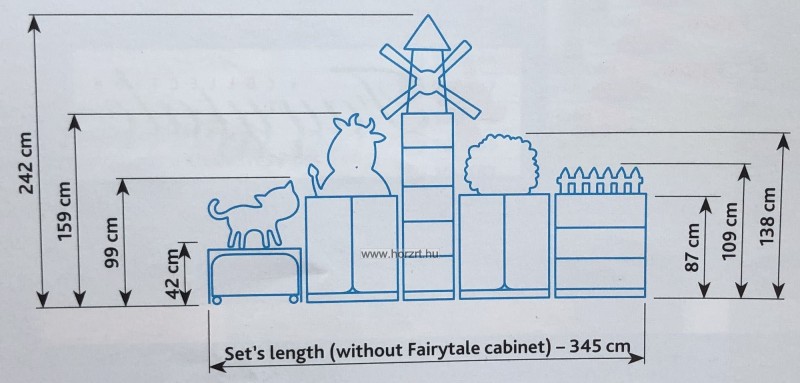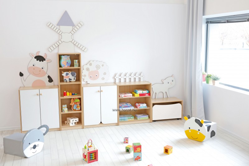 Az egyes szekrényelemek külön is megvásárolhatóak, tetszés szerint összeilleszthetőek. Választhatunk hozzáillő párnákat, puffokat, fali vonalvezetőket is.