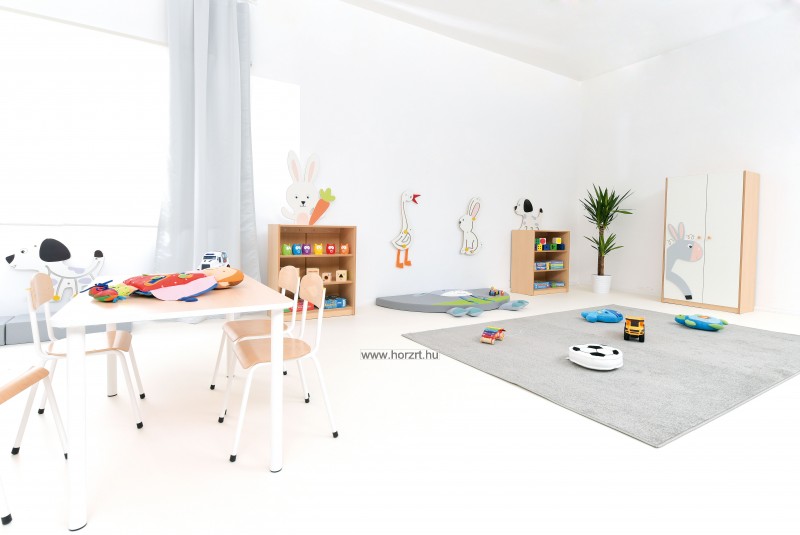Anyaga: nyírfa színű, 18 mm vastag laminált és fehér színű, 16 mm vastag MDF bútorlap