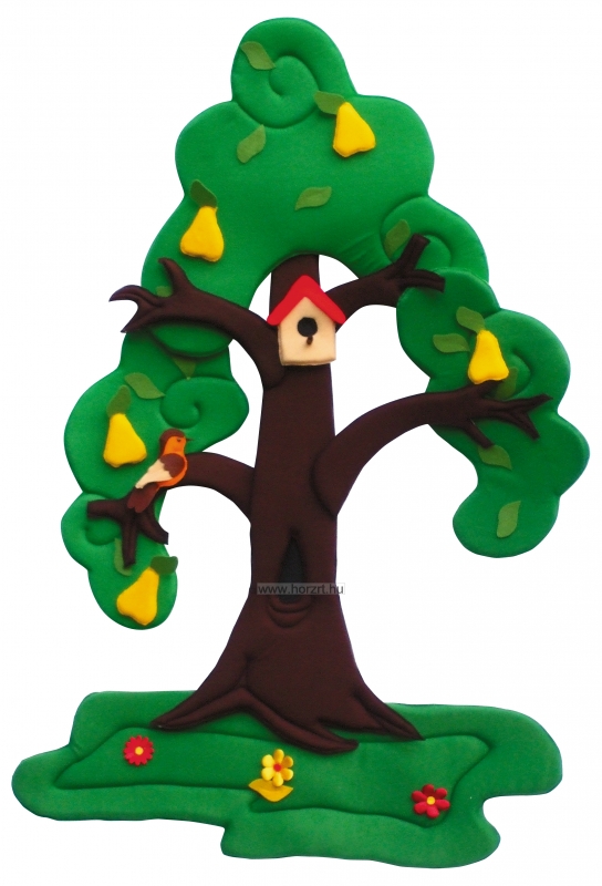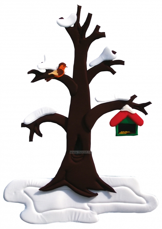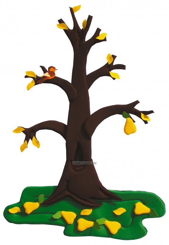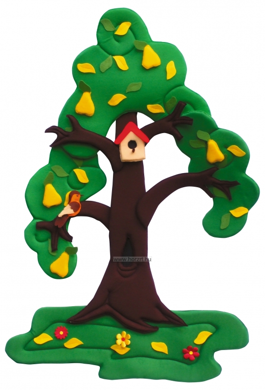 A tépőzáras elemeknek köszönhetően a fa tavasszal virágzik, nyáron érik rajta a gyümölcs, összel lehullanak a levelek, télen pedig fehér hórétegbe burkolózik.
