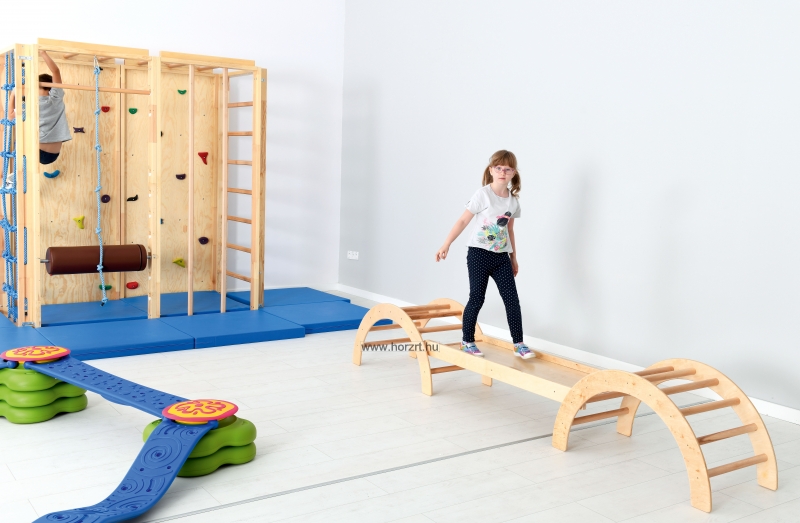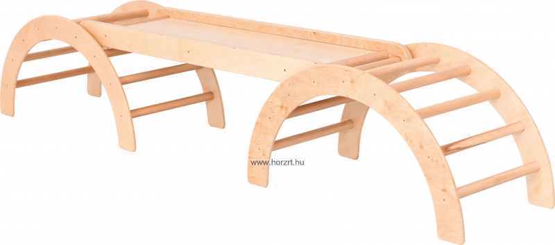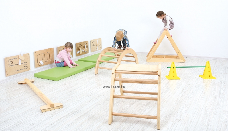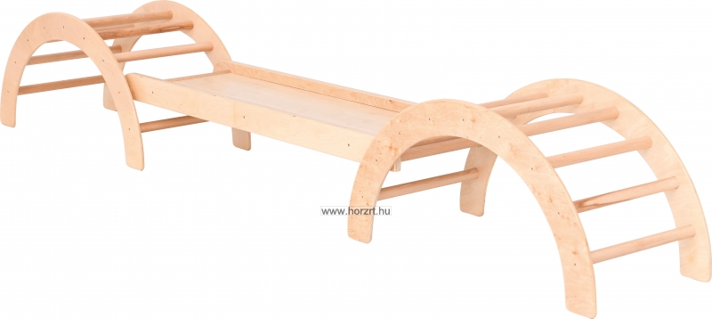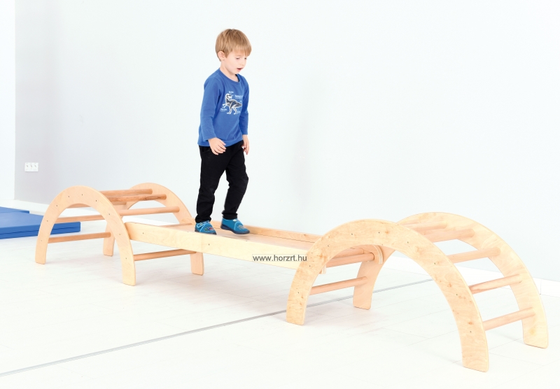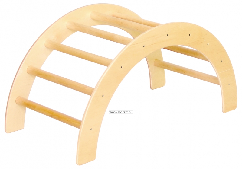 A félkör alakú, tömör fa mászóka fejleszti a gyermek egyensúlyozó képességét, nagy mozgását, a szem-kéz és a szem-láb koordinációját.