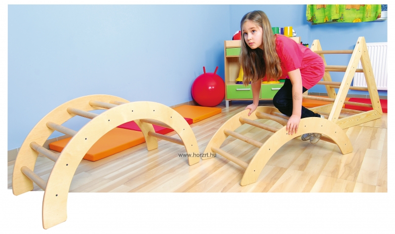 A félkör alakú, tömör fa mászóka fejleszti a gyermek egyensúlyozó képességét, nagy mozgását, a szem-kéz és a szem-láb koordinációját.