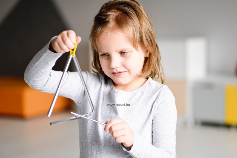 Készlet tartalma: csembaló, 5 db triangulum, maracas, nyeles kasztanyetta, csörgő dob, csörgő, nyeles fadob, agogó, ritmusbot, kasztanyetta