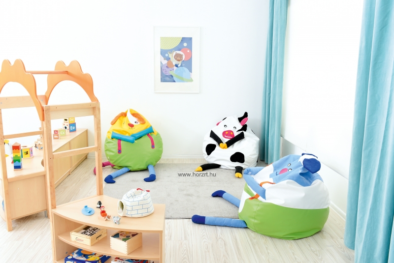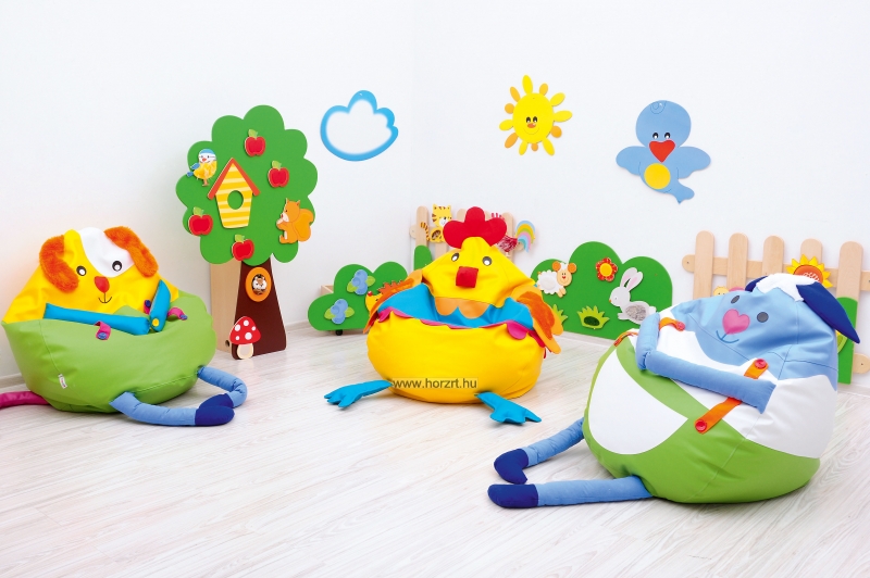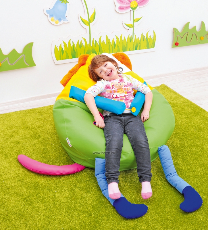 A finommotorika fejlesztése érdekében gombolós részletek is helyet kaptak a párnán. Érzékszervi, szenzoros elemek: gombmancsok, műbőr orr, hosszú szőrös fülek, gombolós merevítők, granulátum töltelék. Töltetének köszönhetően felveszi a gyermek formáját.