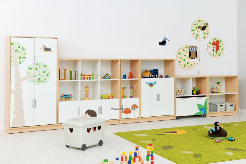 A színes, gyermekbarát motívumok inspiráló, de visszafogott környezetet teremtenek és játékra, tanulásra ösztönöznek. A szekrénysor csak egyben rendelhető!