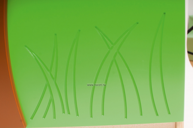 A szekrények 18 mm vastag juhar laminált lapból készültek, színes MDF ajtókkal és kiegészítő díszítőelemekkel.