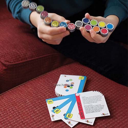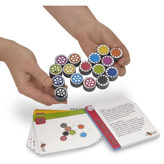 Forgasd a Coggy-kerekeket a megfelelő helyzetbe, és rakd ki belőlük azt a formát, ami a feladványkártyádon szerepel. A kártyán lévő üres körök helyére bármilyen színű elemeket illeszthetsz, a cél az, hogy a színes körök helyén a megfelelő kerekek legyenek. A feladványt akkor teljesítetted, amint a kerekek pontosan abban a formában és elrendezésben vannak, mint ahogy a kártyán.