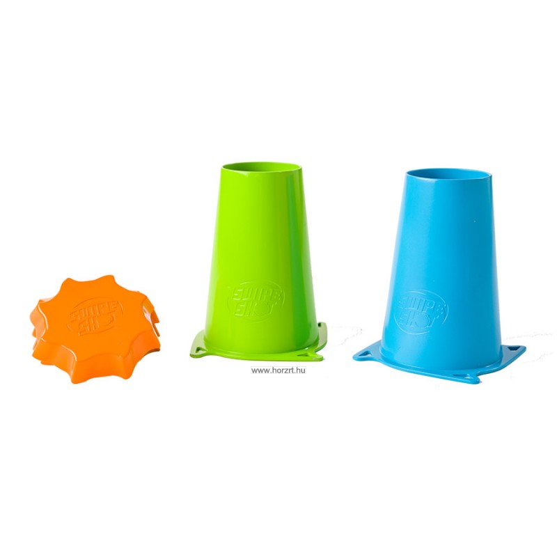 A talajra kör alakban, egyenlő távolságra helyezzünk el 3 zöld és 3 kék poharat.