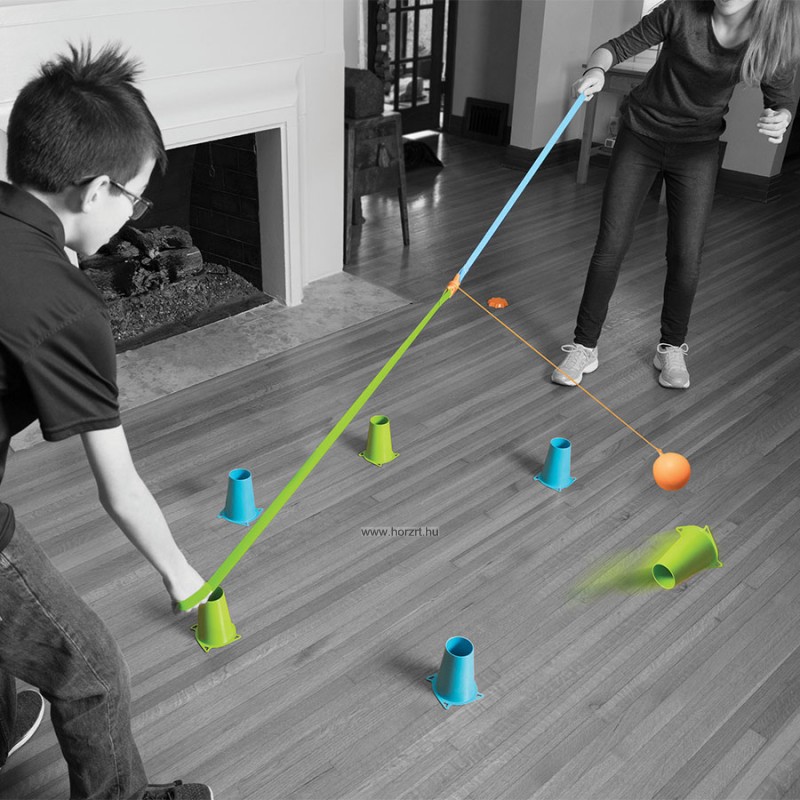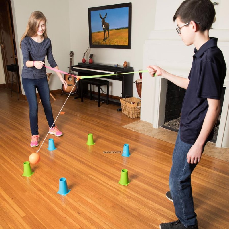A gyerekeknek a labdával el kell találni és eldönteni az ellenfél összes poharát.
