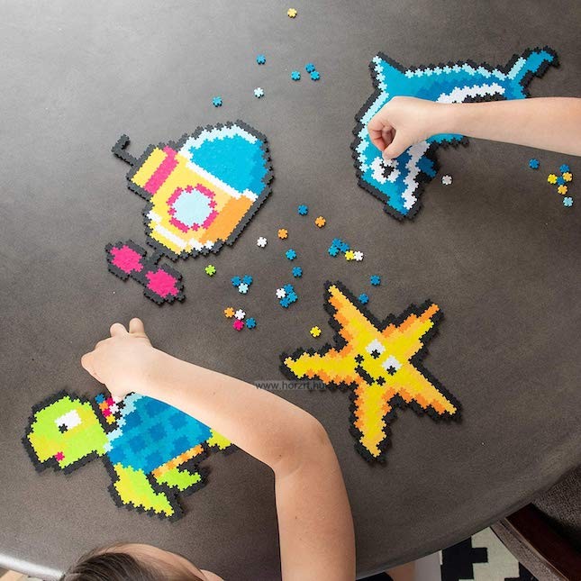 Készíts egy delfint, tengeri csillagot, tengeri teknőst és tengeralattjárót, vagy egy óriási trópusi halat a Tenger alatti készlettel, vagy éppen ami eszedbe jut. A készlet kiváló lehetőséget kínál, hogy kiéljük kreativitásunkat, de nem árt egy kis inspiráció sem.