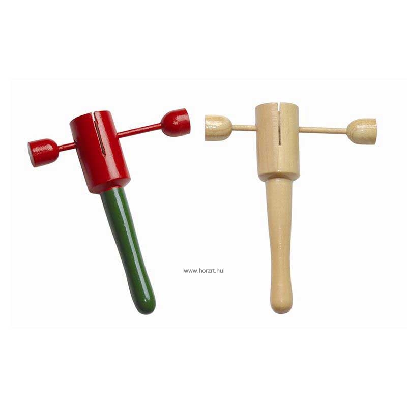 Kézzel készített, két hangot megszólaltató fa, csattogó ritmushangszer.