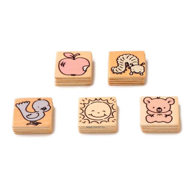 5 különböző sorozatalkotó fából készült játék, egy dobozban.