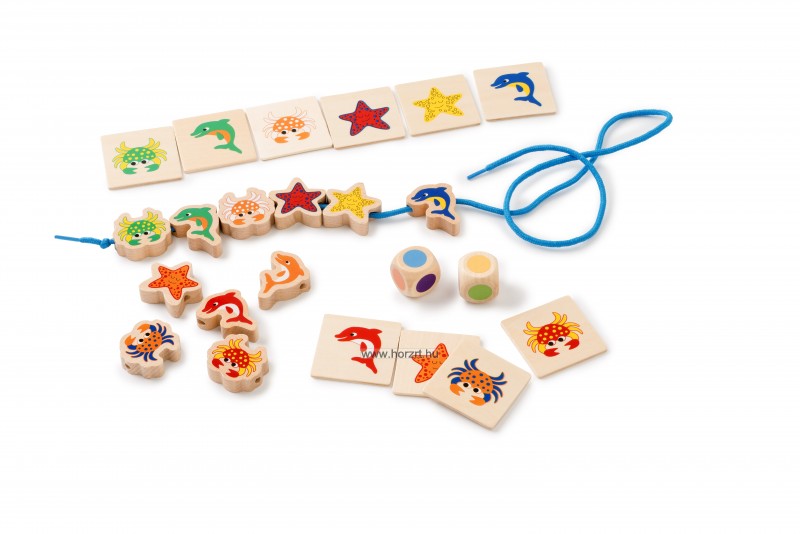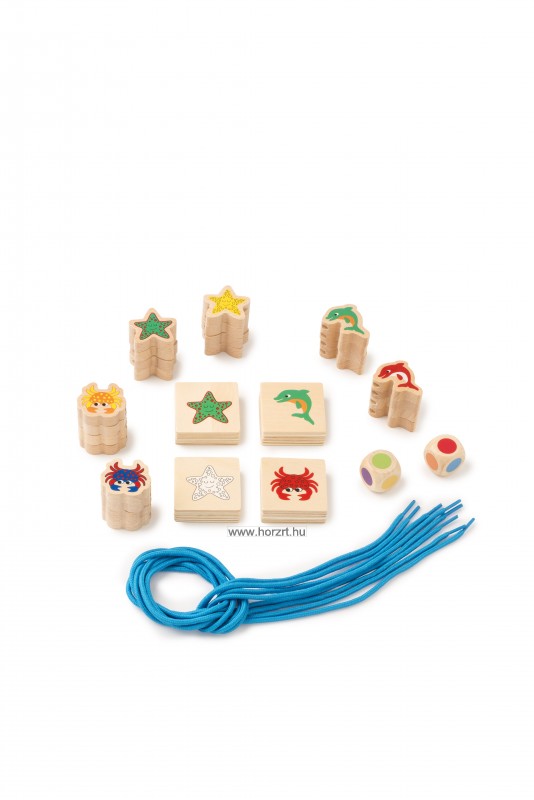 Delfinek, rákok, tengeri csillagok szerepelnek ebben a fűzős játékban.