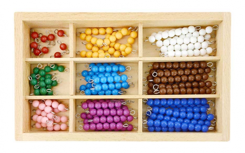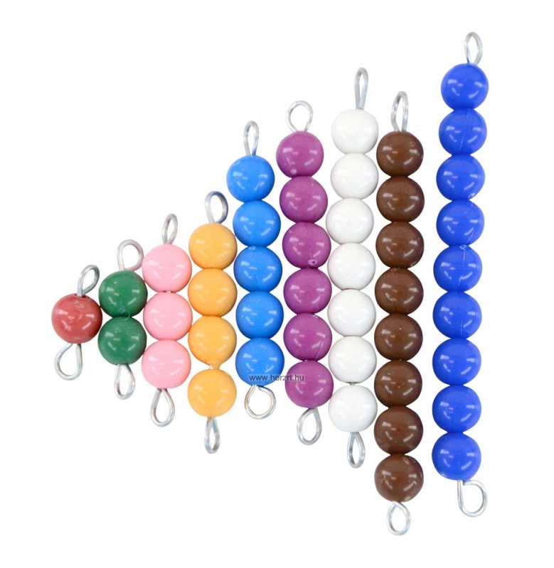 Montessori gyöngykészlet, amely játékos és kreatív módon segíti a gyermekek számolási készségeinek fejlesztését.
