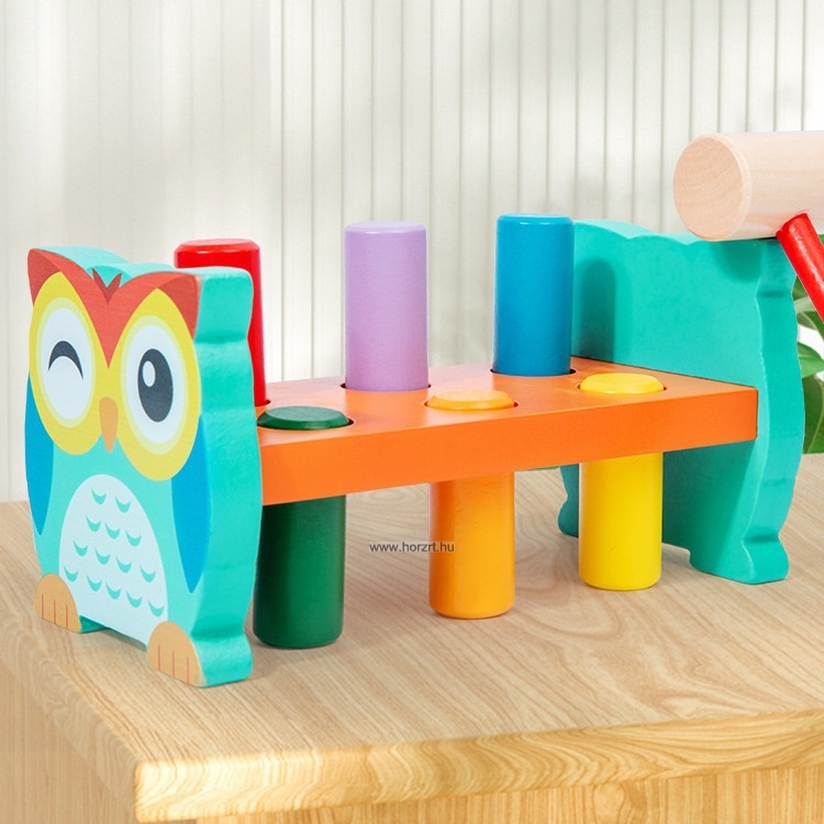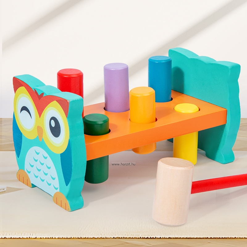 Ez a kedves bagoly mintás kalapálós játék ideális a legkisebbeknek, akik imádnak mozogni és felfedezni.