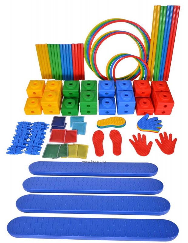 A készlet változatos elemeket tartalmaz: építőkockákat, csöveket, babzsákokat és egyéb felszereléseket, melyek kifejezetten a mozgáskoordináció fejlesztését szolgálják.