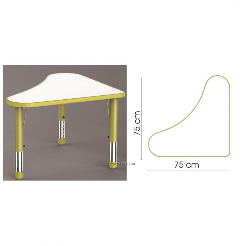 Óvodai trapéz asztal, állítható magasságú, 118x60x52-58 cm, lekerekített sarkokkal, élekkel - juhar