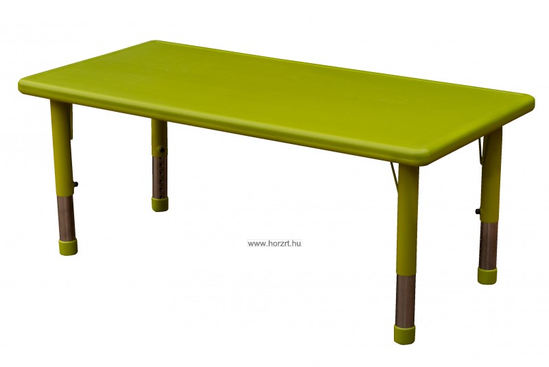 Az asztalláp és az asztallábak színe eltérő zöld színű! Az asztal magassága állítható, hogy a megfelelő magasságba legyen a különböző korosztályú gyermekek számára. Az asztal szabadon kombinálható bármilyen kiegészítővel.