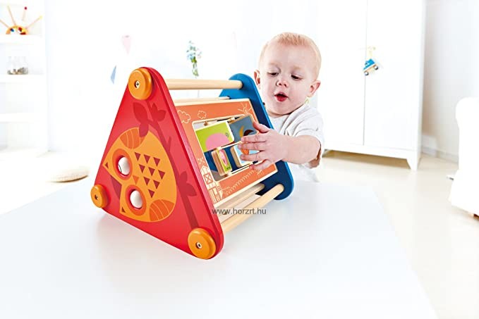 5 oldalú játékdoboz, amelynek mindegyik oldalán más és más típusú fejlesztő játék található.