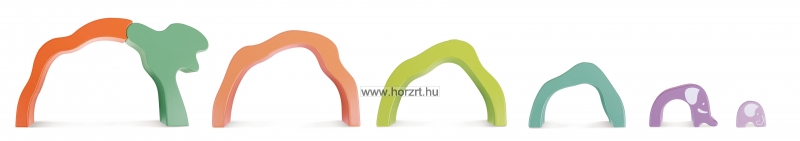 A Hape Elefánt piramis - Montessori építő 24 hó+ 7 db egymásra helyezhető elemből áll. Az eltérő méretű ívek segítenek megtanítani a gyerekeknek a méretek közötti különbségeket, hiszen az elefánt csak akkor rakható egymásba, ha megfelelő sorrendbe teszik az elemeket.