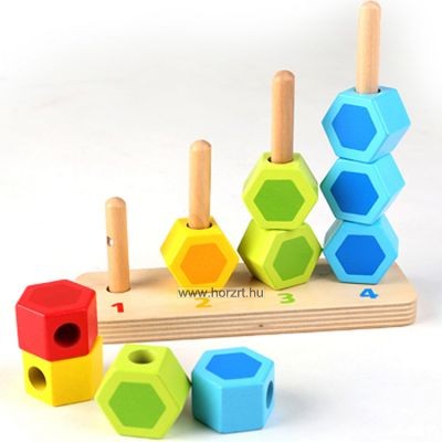 Hatszögeket helyét kell megtalálni és ráhúzni a pálcákra, a megfelelő színben és számosságban.